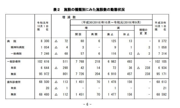 〈引用:厚生労働省 「令和元(2019)年医療施設(動態)調査・病院報告書の概況」